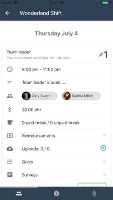 You may be tasked with completing a post-shift survey, to help us gain more information about how the shift went, what the highlights were, and so on. After the shift has been completed, your time is automatically tracked and sent to the invoicing system, allowing us to complete payroll without any manual intervention.