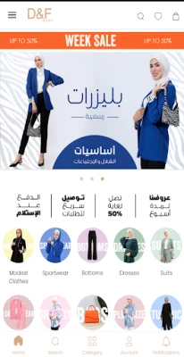 تطبيق هاتف شركة D&F MODA للملابس المميزة هو تطبيق محمول يهدف إلى توفير تجربة تسوق مريحة ومميزة لعملائها. يتميز التطبيق بالعديد من الميزات والوظائف التي تسهل عملية البحث عن المنتجات وشراءها بسهولة وسلاسة. إليك وصفًا للتطبيق: