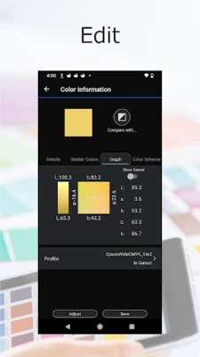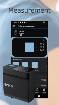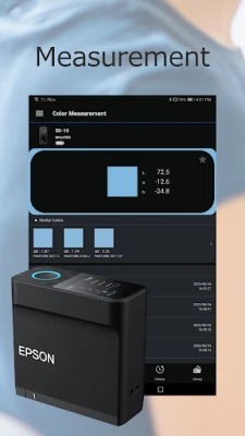 - Epson's original sensing technology realizes high-precision color measurement with a single tap in this app.