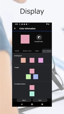 - Suggests colors that harmonize with the measured color.