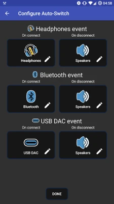 Auto-Switch: Detect when headphones are inserted or removed, and switch to any audio output or mute/unmute the speaker automatically.