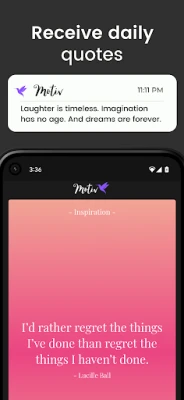 Find your inspiration with Motiv! With Motiv, you will receive motivational quotes to help you find the motivation to be your best self every day. Learn to love yourself and take care of yourself, knowing that you are important and worthy of all the good things life has to offer. Motiv offers thousands of quotes from wise and intelligent people to help you be happy and full of motivation.