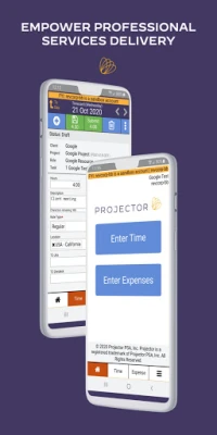 Projector time and expense entry for Android allows users of Projector's professional services automation software to track their time and expenses while on the go. Quickly add new projects or tasks to your time sheet, track details about the work you have performed, or snap a picture of a receipt and upload it to your expense report.