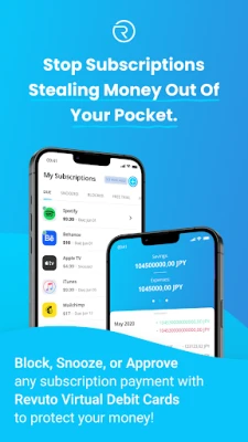 The Revuto app with the Subscription management service to easily manage your subscriptions and Revuto Virtual Debit Cards to easily Block, Snooze or Approve subscription payments will be available in Q4 2022.